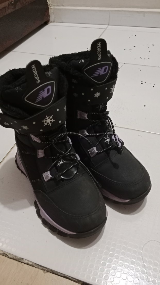 Kız çocukları için siyah, desenli ve sıcak tutan kürklü goth tarzı botlar. Kolay giyim için cırt cırtlı kapanışa sahiptir.