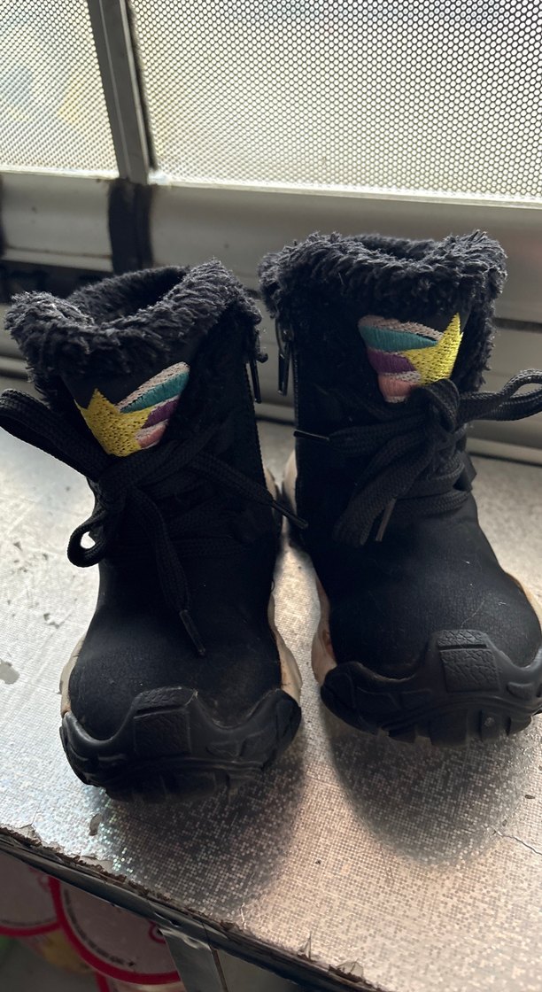 Siyah renkli, desenli kız çocuk botları, yumuşak polar astarlı ve cırt cırtlı bağcıklı tasarıma sahiptir. Sokak stili ve rock punk havası taşır.
