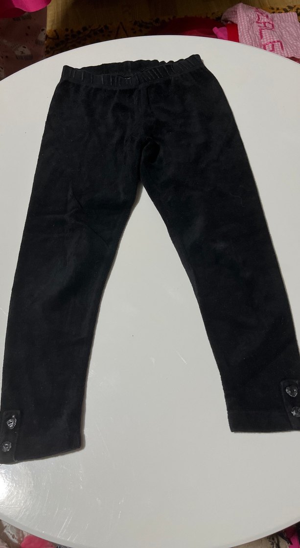 Yumuşak ve sıcak kumaştan yapılmış, bileklerinde düğme detayları bulunan, fitted kesim siyah kız çocuk taytı. Kadife