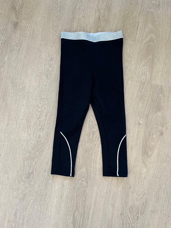 Kız çocukları için elastik bel ve yumuşak, sıcak kumaşlı siyah tayt. Sade, streetwear tarzında, hafif yansıtıcı detaylara sahip. Jimnastik