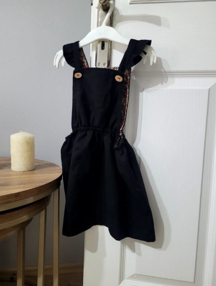 Kız Çocuk Siyah Fırfırlı Askılı Elbise