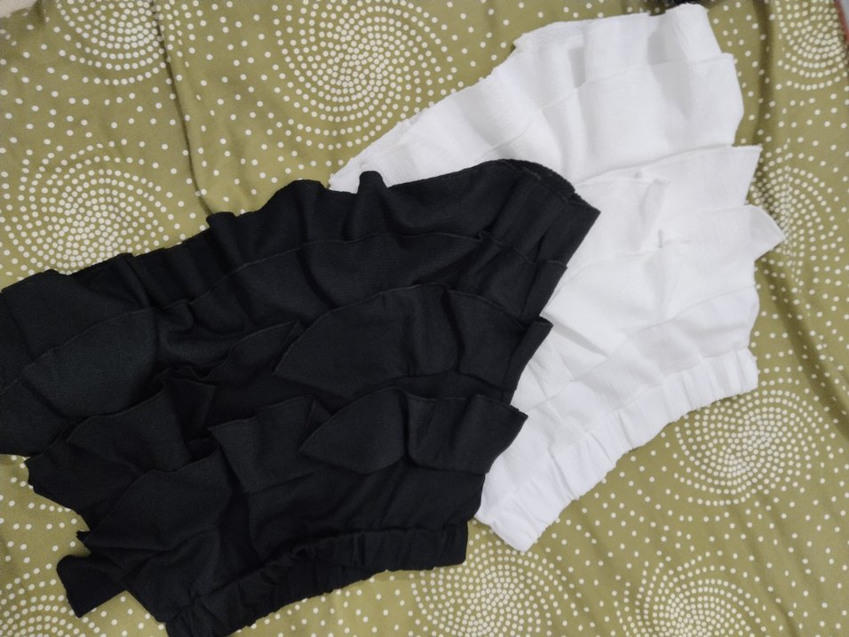 Kız çocuklar için fitted kesim siyah bolero, tekne yaka ve ince askılı, sentetik kumaştan, fırfır detaylı modern tasarım.