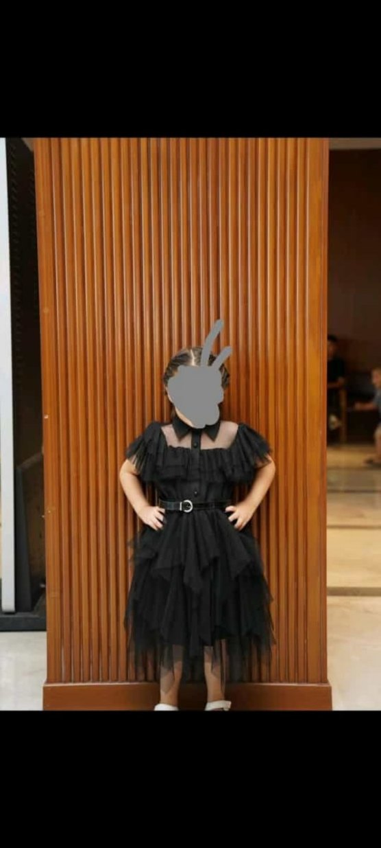 Kız Çocuk Siyah Fırfırlı Gotik Elbise..wednesday elbisesi