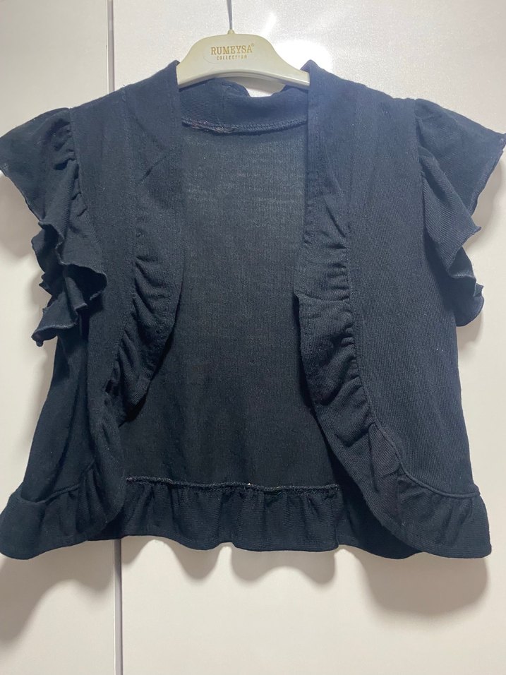 Kız Çocuk Siyah Fırfırlı Kısa Kollu Bolero
