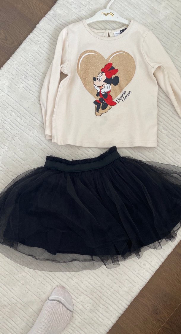 Kız Çocuk Siyah Fırfırlı Pamuklu Etek ve üst takım
