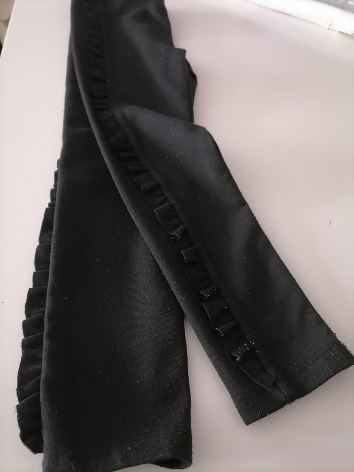 Kız çocukları için siyah, vücuda oturan taytlar yanlarda ince fırfır detayına sahiptir. Yumuşak sentetik kumaştan yapılmıştır ve goth tarzını yansıtır. Kusuru yoktur, kalın bir tayttır.