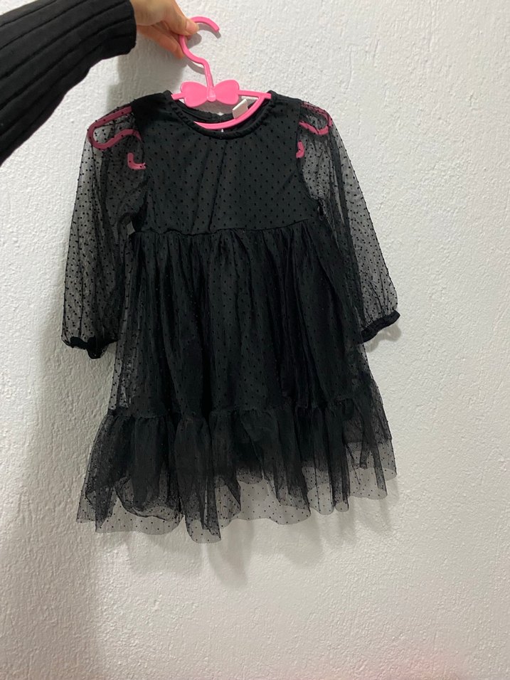 Kız Çocuk Siyah Fırfırlı Uzun Kollu Elbise
