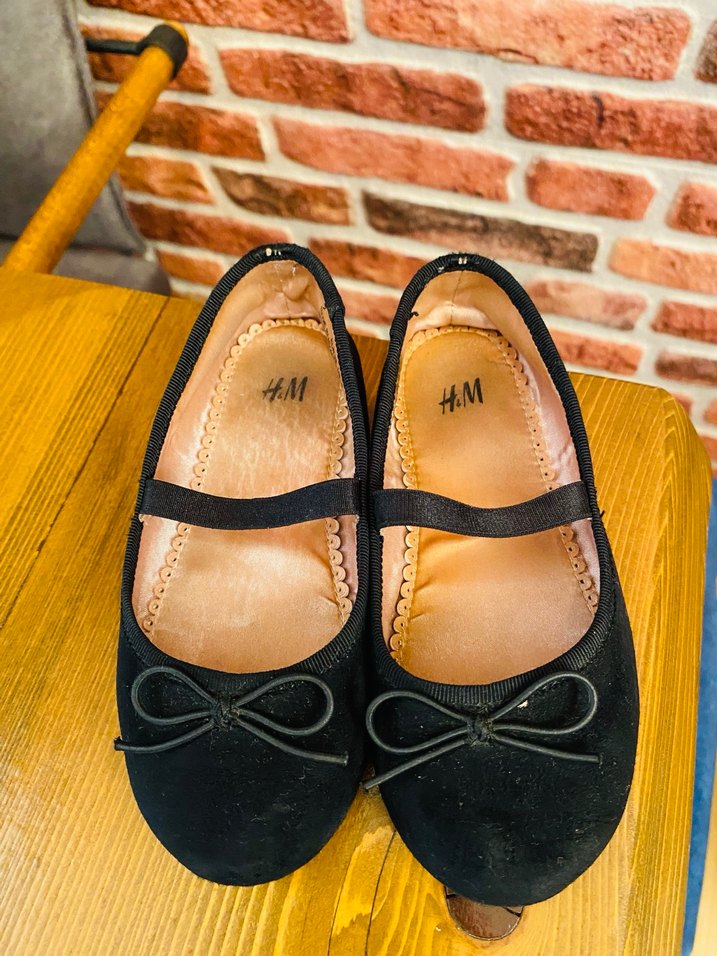 H&M kız çocuk siyah babetler, fiyonk ve üstte bant detayıyla. Düz yüzeyli ve kauçuk tabanlı.