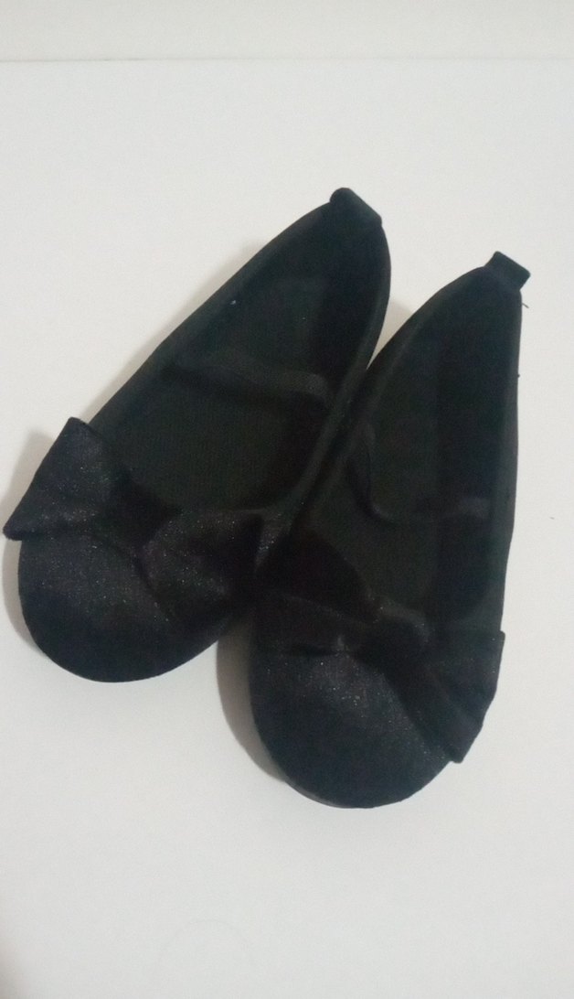 Siyah renkli, fiyonk detaylı kız çocuk babet ayakkabı. Kauçuk malzemeden yapılmış, sade ve desensiz tasarım.Görseldekinden daha iyi siyahı daha canlı dışarıda hiç kullanılmamış evde bir kez kullanılmamış