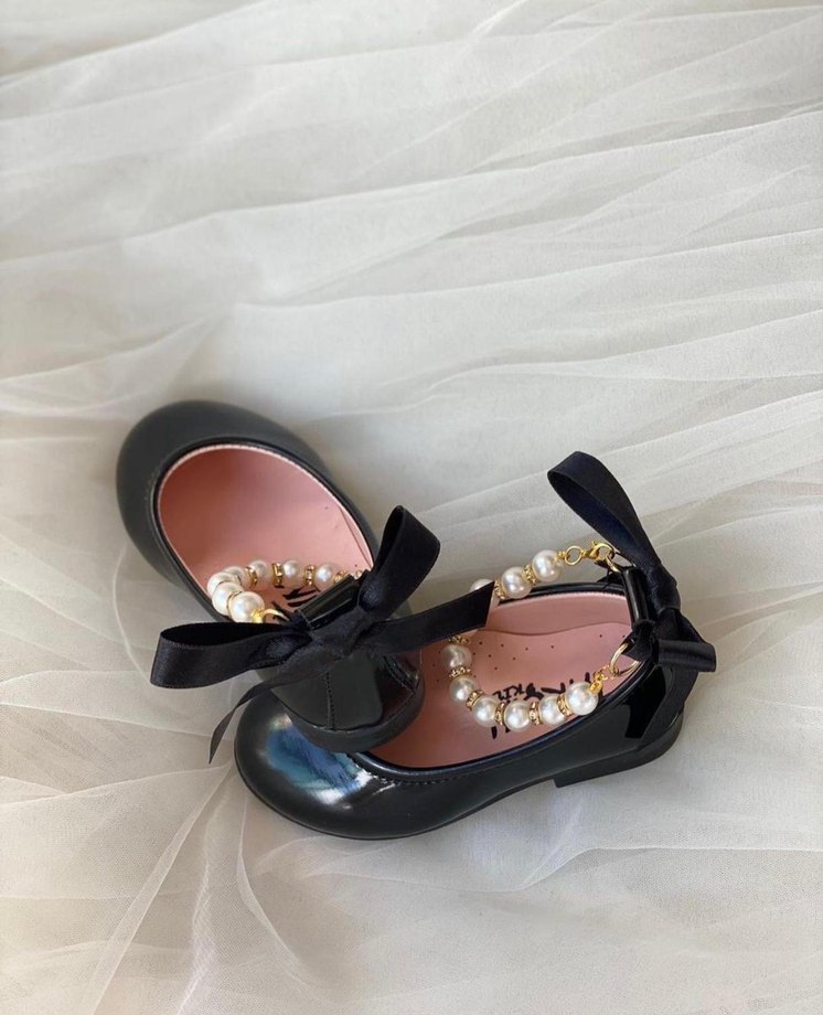 Kız çocukları için siyah, fiyonk detaylı ve inci süslemeli kauçuk bale ayakkabısı, gotik tarzda. Ürünlerimiz 0 üründür. 21-35 numara arası mevcuttur almak istediğiniz numarayı bize atın ilan açalım
