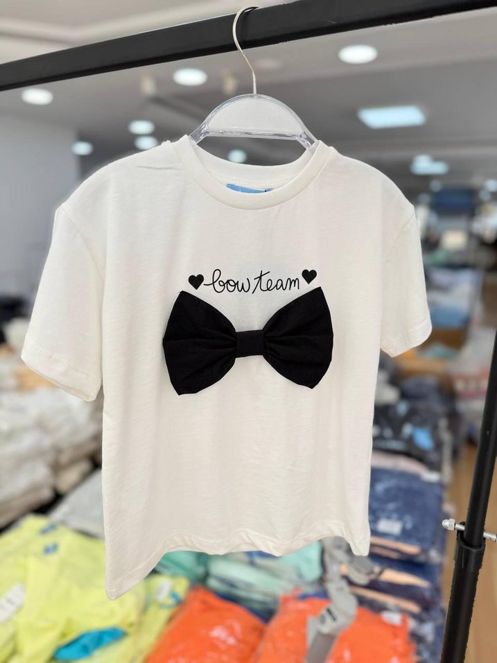 Kız Çocuk Siyah Fiyonk Detaylı Beyaz Tişört