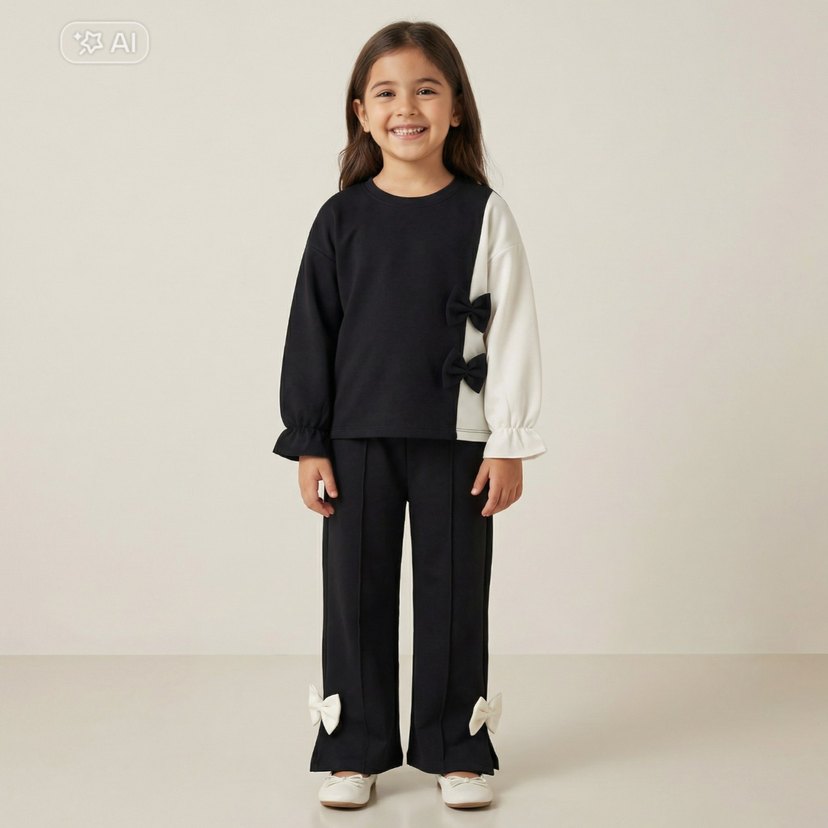 Kız Çocuk Siyah Fiyonk Detaylı Eşofman Takımı