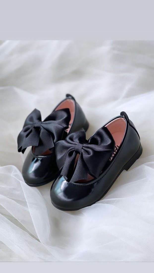 Kız Çocuk Siyah Fiyonklu Babet