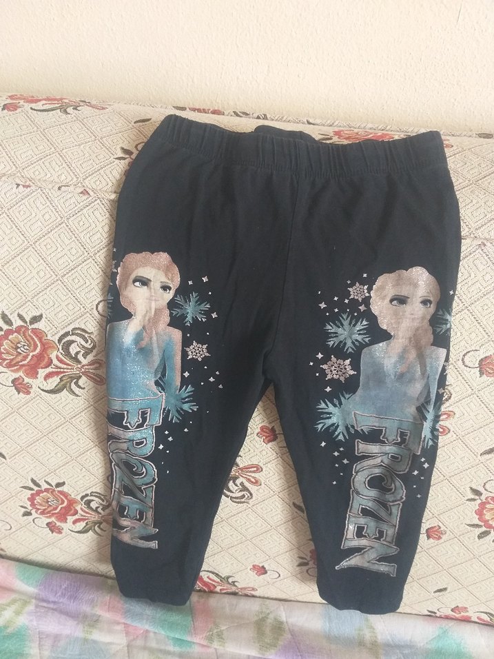 Siyah renkli, baskılı Frozen desenli kız çocuk taytı, esnek bel bandı ile rahat kullanım sunar. Yumuşak ve sıcak kumaştan, günlük sokak stiline uygun. ❄️
