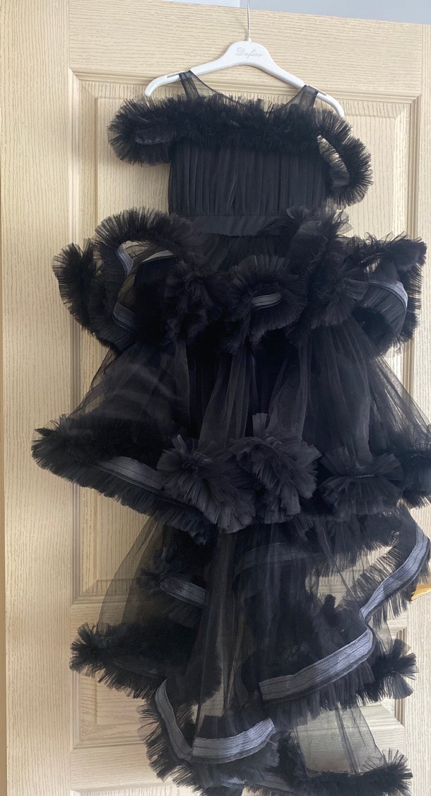 Kız Çocuk Siyah Gotik Fırfırlı Abiye Elbise