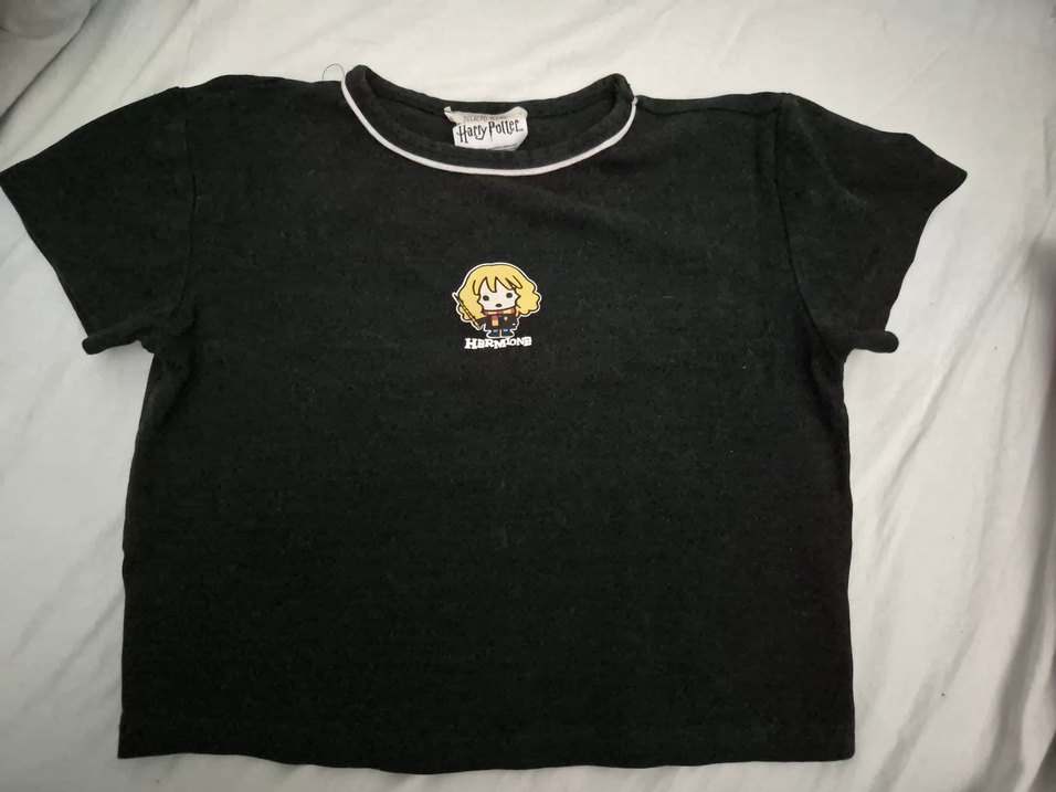 Kız Çocuk Siyah Harry Potter Hermione'li Kısa Kollu dar Tişört