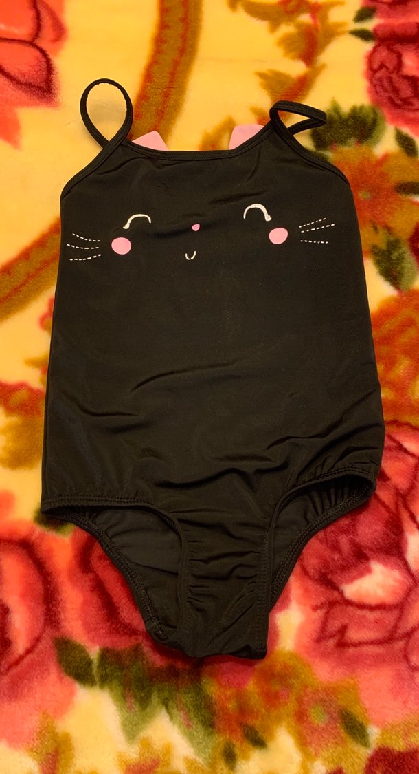 Kız çocukları için ince askılı, siyah mayo, sevimli kedi yüzü desenli, parti için uygun, düz ve koyu goth tarzında.