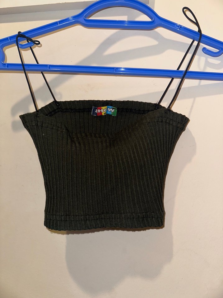 Kız çocukları için ince askılı ve straplez yakalı, siyah renkli triko kumaştan yapılmış dar kesim bir atlet. Kadin kısa Crop S beden kız çocuklarına da uygun .