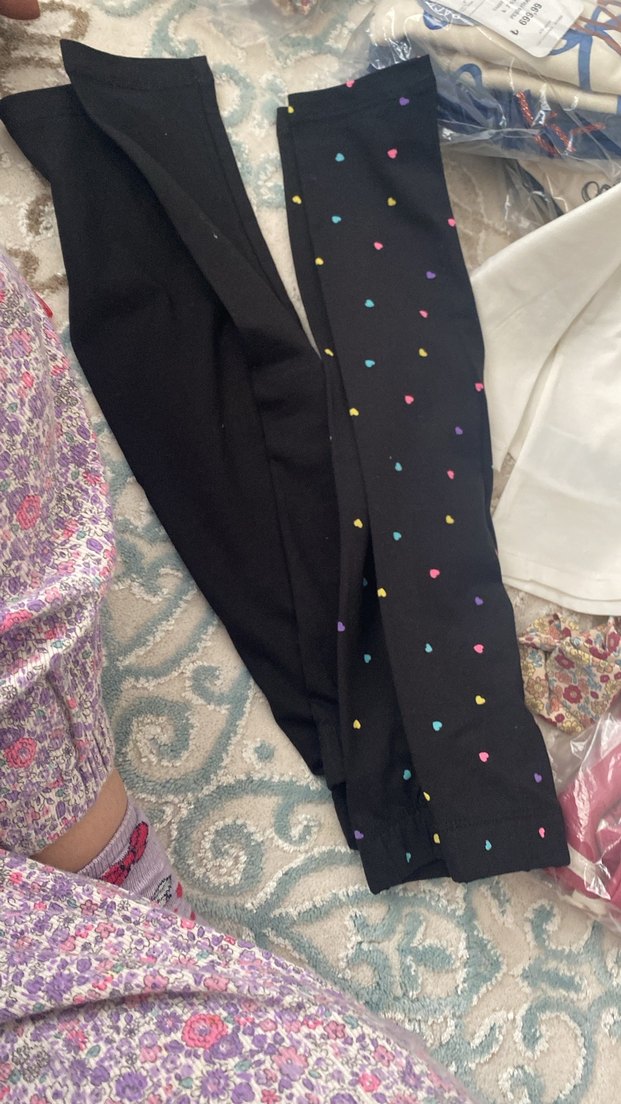 Esnek sentetik kumaştan yapılmış, küçük renkli kalp desenli siyah kız çocuk taytı, rahat sokak stili için uygundur.
