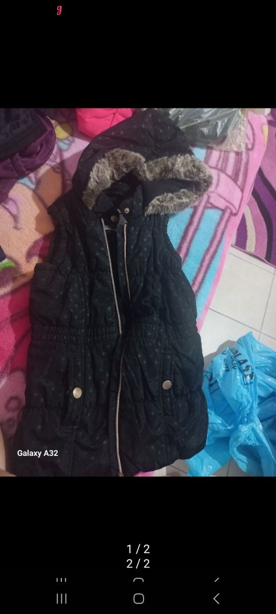 Kız Çocuk Siyah Kapüşonlu Fermuarlı Yelek