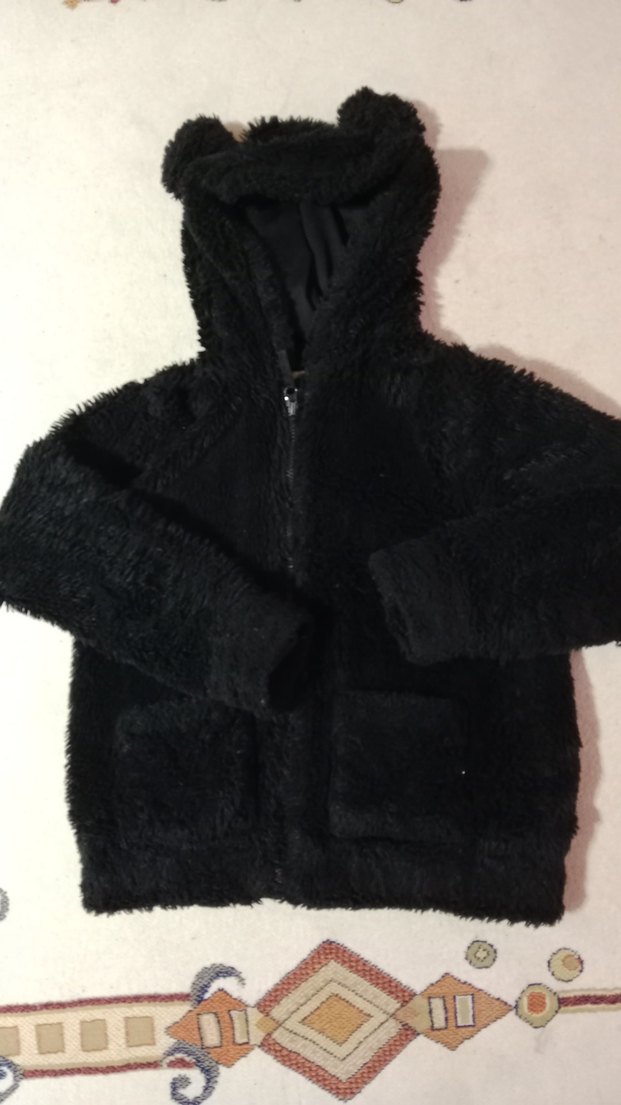 Kız Çocuk Siyah Kapüşonlu Kürklü Ceket