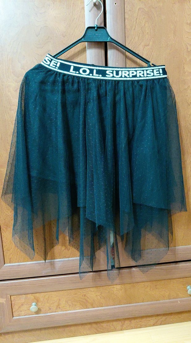 Kat kat fırfırlı, bol kesim kız çocuk eteği. Esnek beli üzerinde 'L.O.L. SURPRISE!' yazısı bulunur. Yumuşak sentetik kumaştan, sokak modası için uygun. özel günler için uygundur