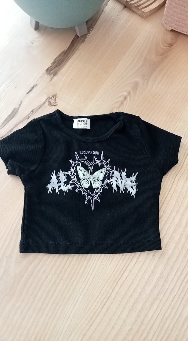 Kız Çocuk Siyah Kelebek Baskılı Goth Tişört