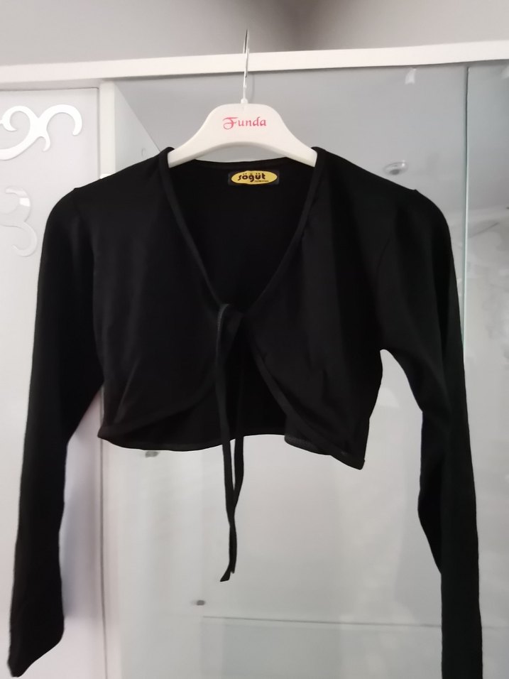 Kız Çocuk Siyah Kemerli Uzun Kollu Bolero