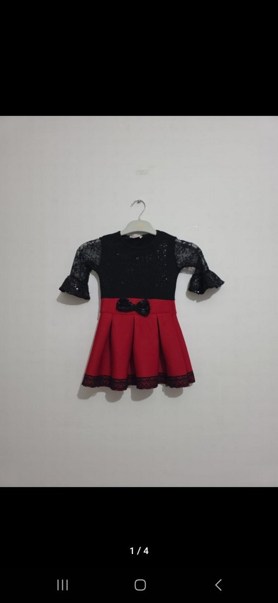Kız çocuk elbisesi, dantel uzun kollu ve küçük siyah kurdele detaylı kırmızı etekle klasik gotik tarzda, vücuda oturan kesime sahip.temiz kullanılmış 9 12 aya uygundur