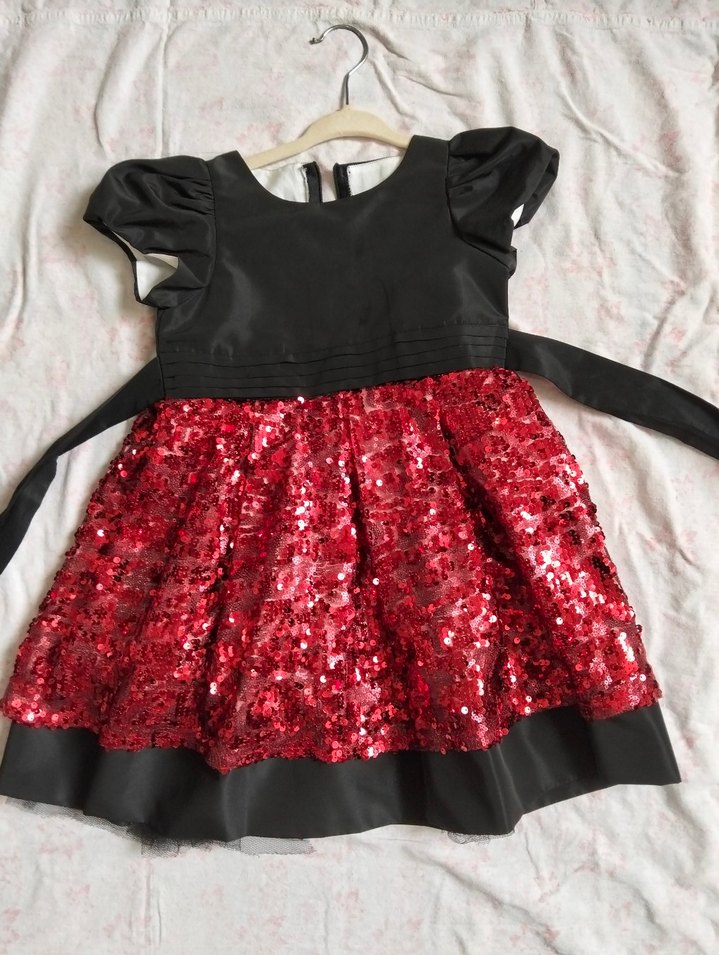 Kız Çocuk Siyah Kırmızı Pullu Elbise