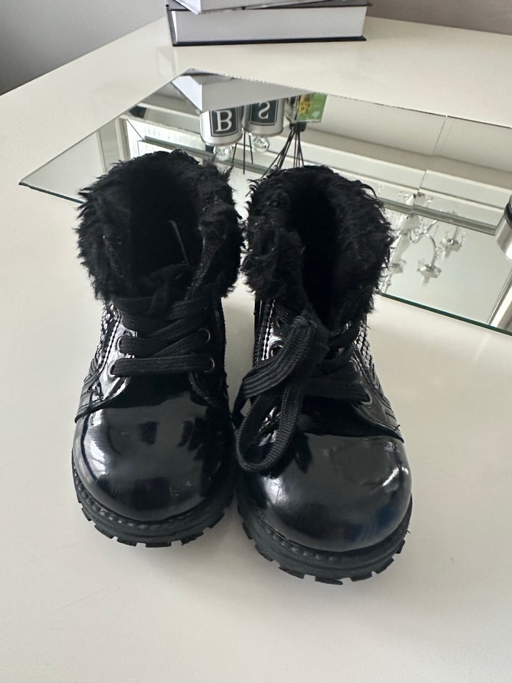 Siyah, kürk detaylı kız çocuk bot. Yırtığı-kusuru yoktur. Yeniden farksızdır. 23 numaradır.