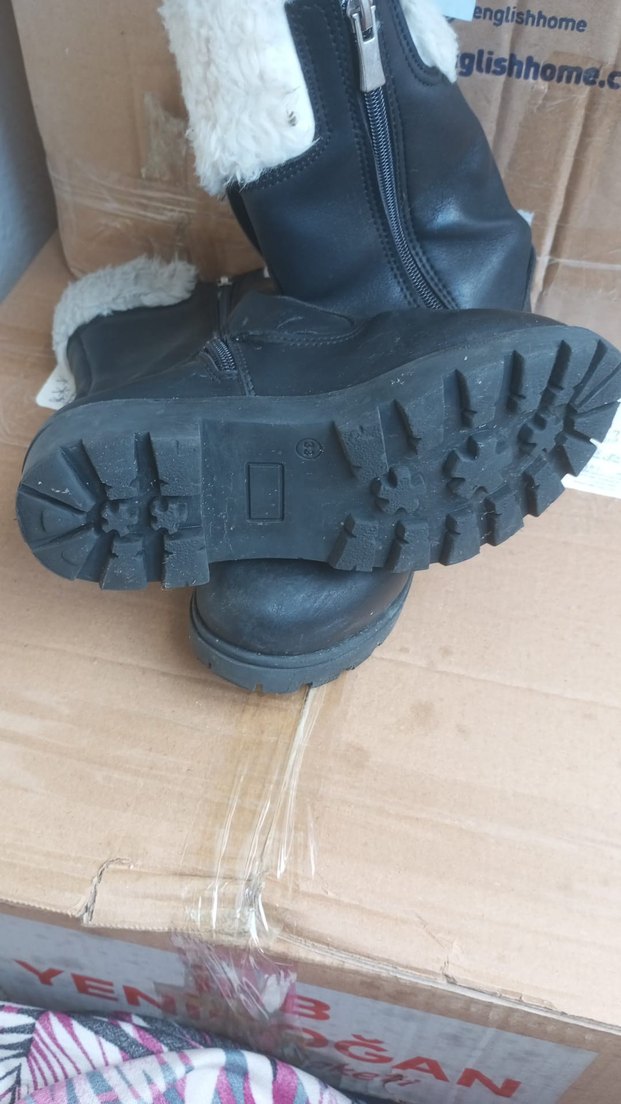 Kız çocuklar için siyah kauçuk bot, kürklü detaylı ve goth tarzında, sağlam tabanlı sade tasarım.