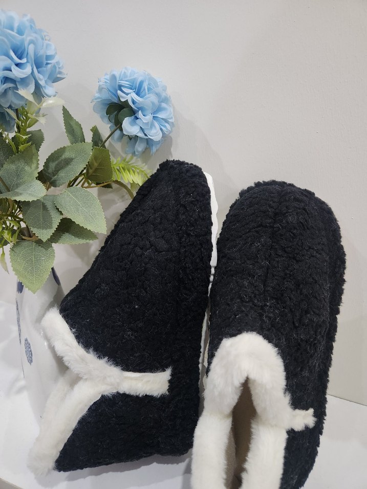 Kız çocukları için siyah, yumuşak ve sıcak kumaştan yapılmış, kürklü detaylara sahip terlik. Sade ve koyu renkli günlük kullanım için uygun. Peluş ev ayakkabısı sıfır. uygun fiyat. numaraları mevcut.lütfen almadan önce sorunuz.