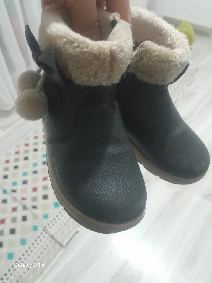 Kız Çocuk siyah Kürklü Sokak Tarzı Bot
