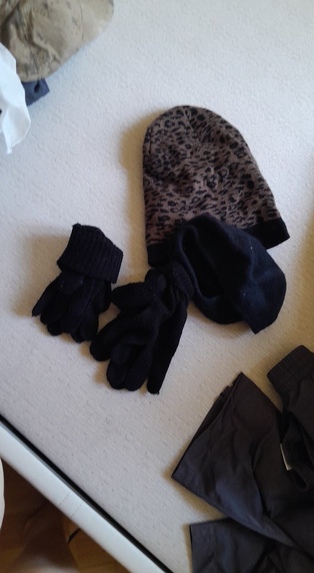 Kız çocukları için siyah, yumuşak ve sıcak tutan, kürk detaylı street style eldivenler. 2 eldiven 2 bere