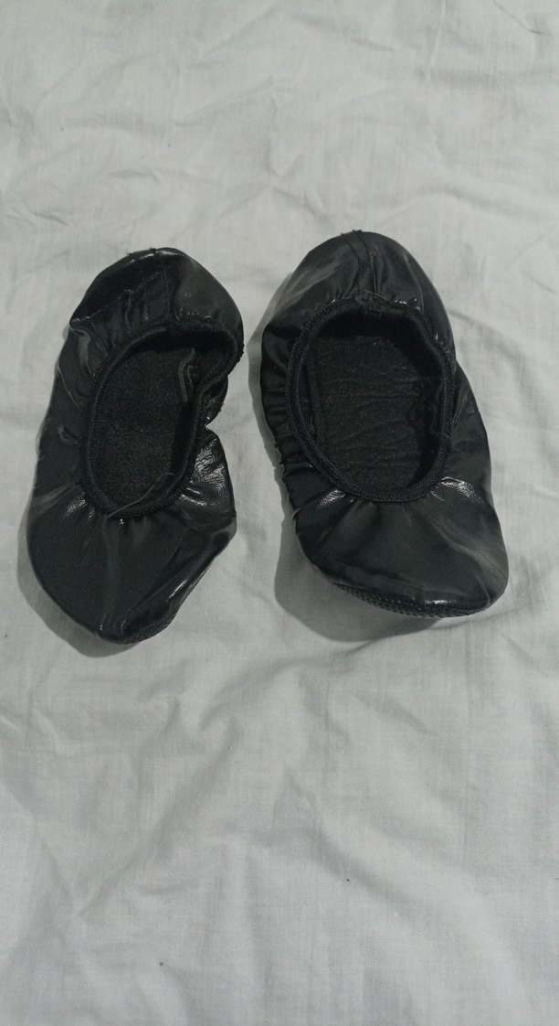 Lastikli kenarları ve kauçuk malzemesiyle siyah kız çocuk bale ayakkabısı, sade ve temel bir tarza sahiptir. ana sınıfta kullanmıştık bedenini hatırlıyorum
