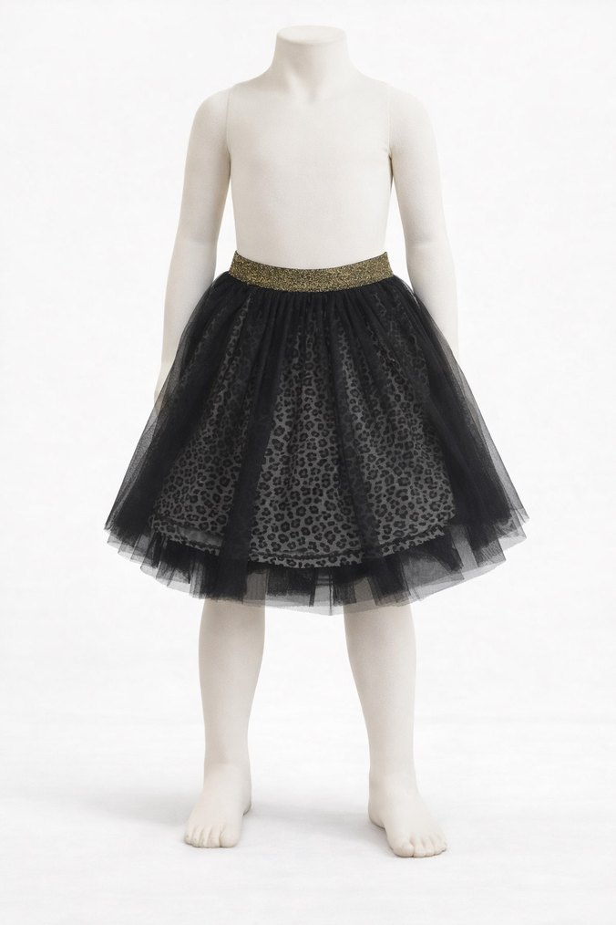 Kız Çocuk Siyah Leopar Desenli Tütülü Etek