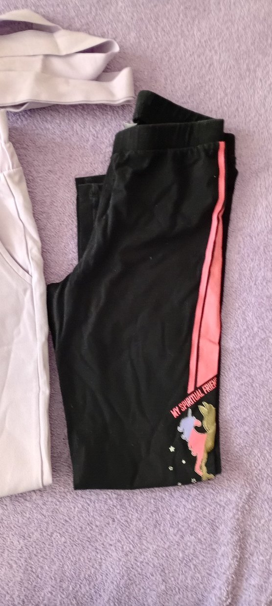 Siyah renkli, pembe yan şeritli ve bilekte baskılı desenli kız çocuk taytı. Yumuşak ve sıcak kumaştan, fermuarlı detaylı.