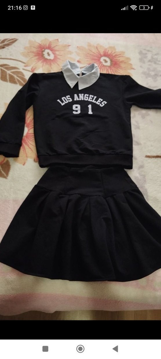 Siyah kız çocuk sweatshirt takımı, bol kesim, uzun kollu ve bisiklet yakalıdır. Sweatshirt üzerinde 'Los Angeles 91' baskısı ve fırfır detayları bulunur. Yumuşak ve sıcak kumaştan üretilmiştir.