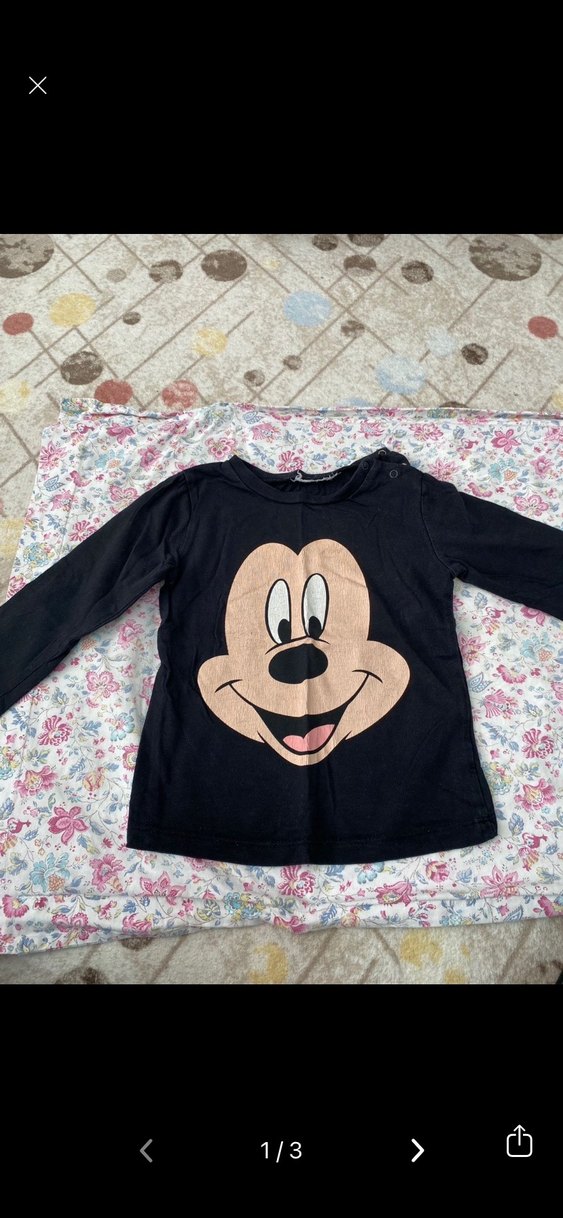 Kız Çocuk Siyah Mickey Baskılı Uzun Kollu Tişört