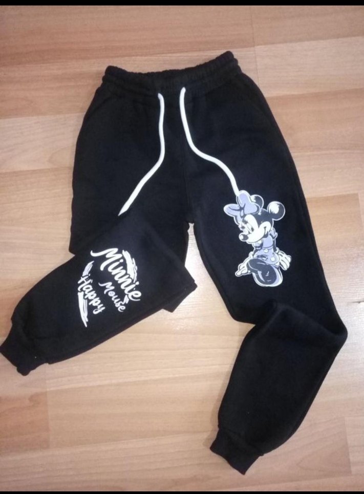 Siyah renkli, bol kesim kız çocuk eşofman altı, Minnie Mouse baskılı ve ayarlanabilir bağcık detaylı. Yumuşak ve sıcak kumaştan üretilmiştir.