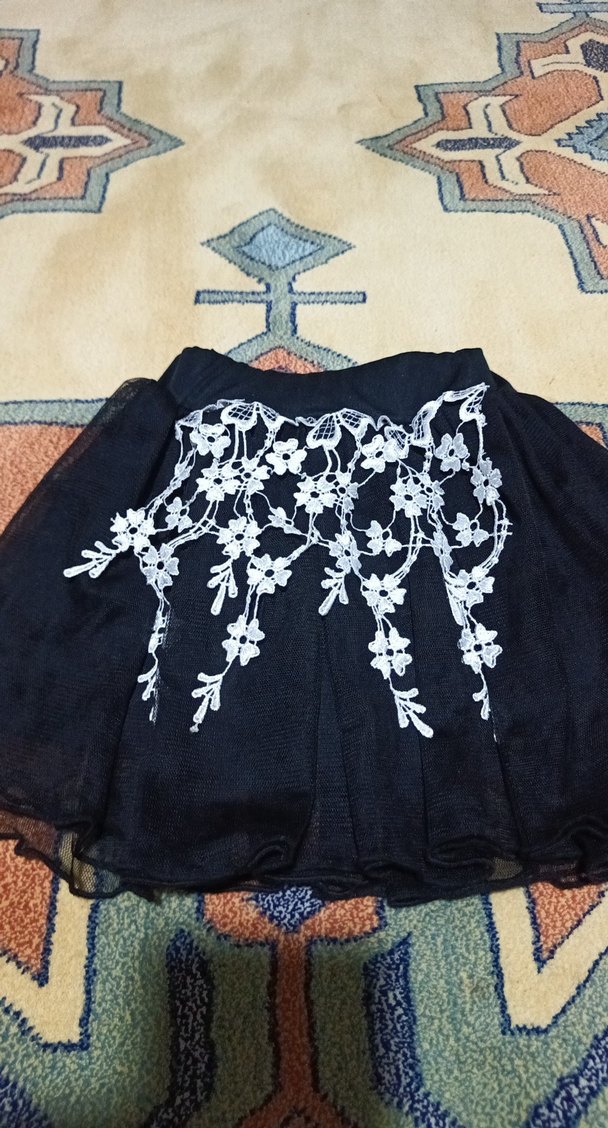 Kız Çocuk Siyah Nakışlı Dantel Etek