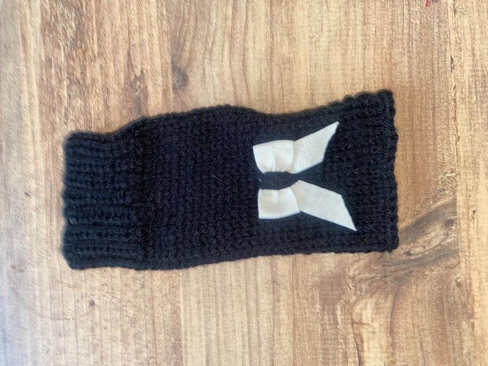 Kız çocukları için siyah örgü eldiven, sade işlemeli fiyonk detayıyla gotik ve temel tarzı birleştiriyor.