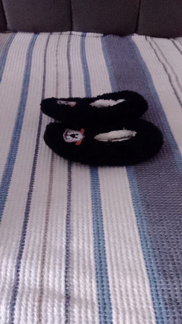Kız çocukları için koyu renkli, örgü yapıda ve yumuşak sıcak astarlı ev terliği, rahat kullanım sağlar.