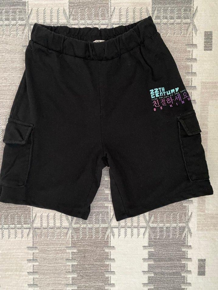 Kızlar için siyah pamuklu şortlar, rahat kesim ve cırt cırtlı ceplerle. Rock punk tarzı baskılı tasarıma sahip, sokak modasına uygun.