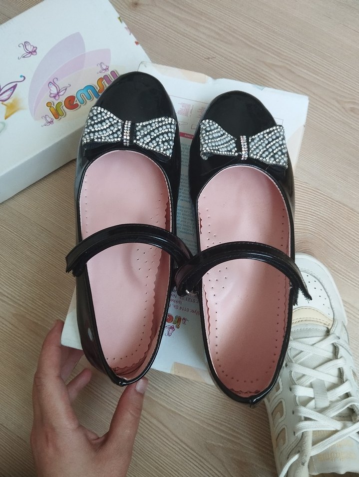 Kız Çocuk Siyah Parlak Fiyonk Detaylı Babet