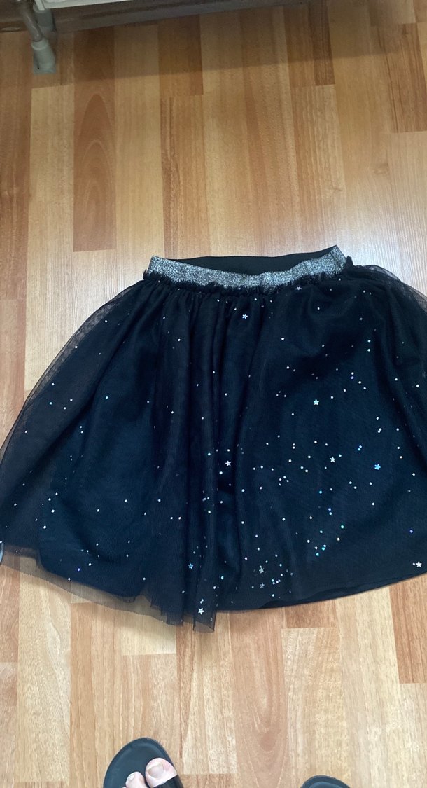 Parlak detaylı, esnek bel bantlı siyah gotik tarzda, yumuşak sentetik kumaştan yapılmış kız çocuk eteği. ✨