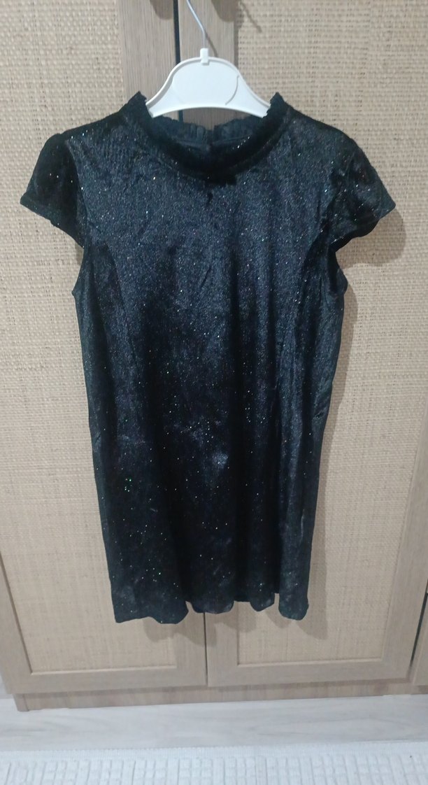 Kız Çocuk Siyah Parlak Kısa Kollu Elbise