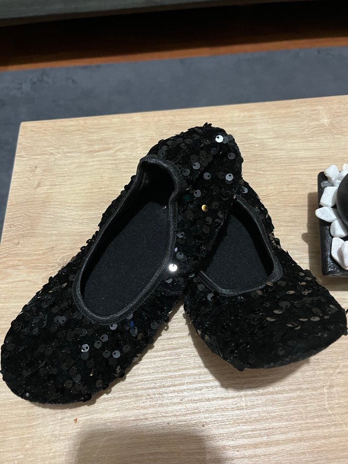 Kız Çocuk Siyah Payetli Babet Ayakkabı Ev Ayakkabı