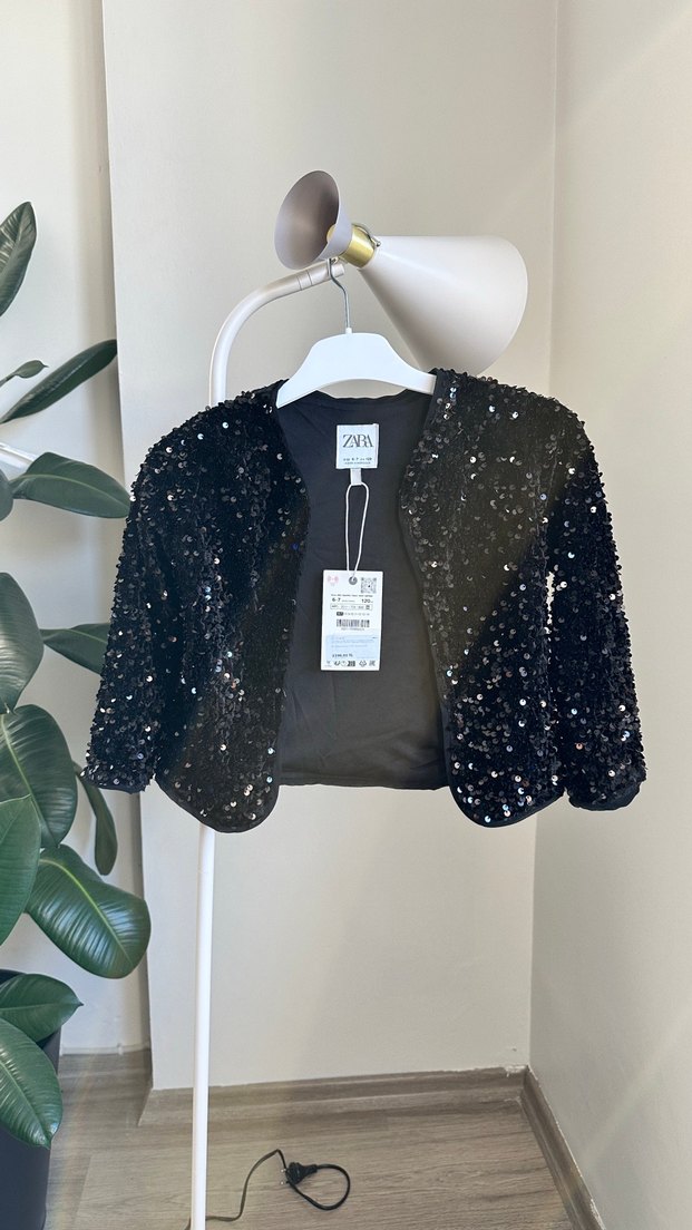 Kız çocuklar için siyah, uzun kollu, yuvarlak yakalı, payetli ve dar kesim bolero. Sentetik kumaştan üretilmiştir, şık bir sokak tarzı sunar. ✨ Ürün orijinal sıfır ve etiketlidir